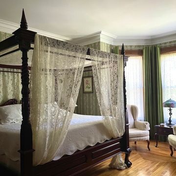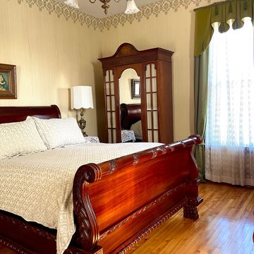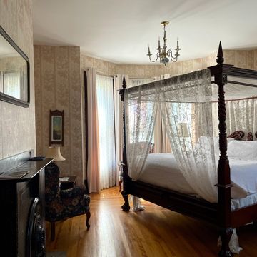 Located on the second floor, The Bread and Roses Inn’s First King Room Includes a king size, four-poster, canopy bed and a private, full washroom en suite.