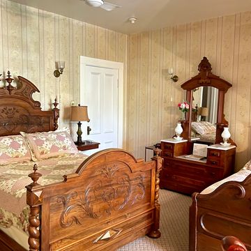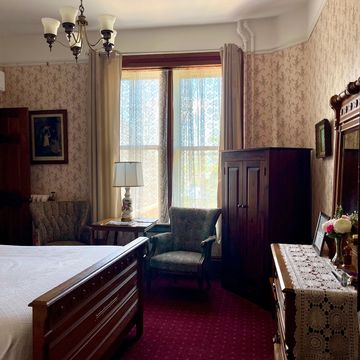 Located on the second floor, The Bread and Roses Inn’s Cozy Room includes a queen bed and a private, full washroom en suite.